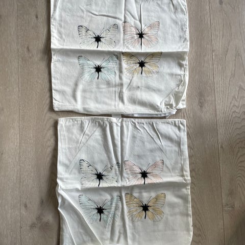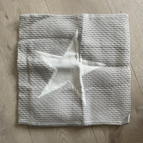 Ubrukt putetrekk i en varm grå tone med påsydde paljetter.