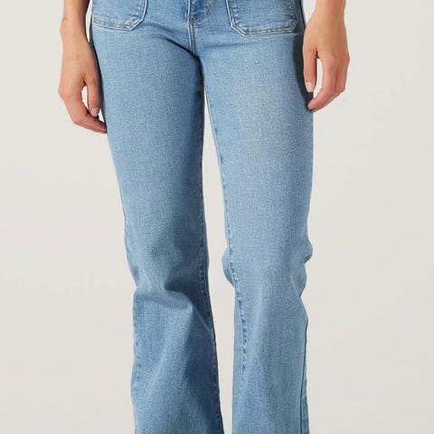 Brukt, men veldig fin! Lav midje, kort på beina (ankel). Knapper i front (ikke glidelås). Veldig fin blå ola / jeans- farge!