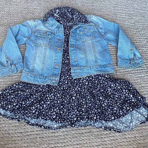 Pent brukt denim jakke og blomstrete topp selges samlet for 100kr.