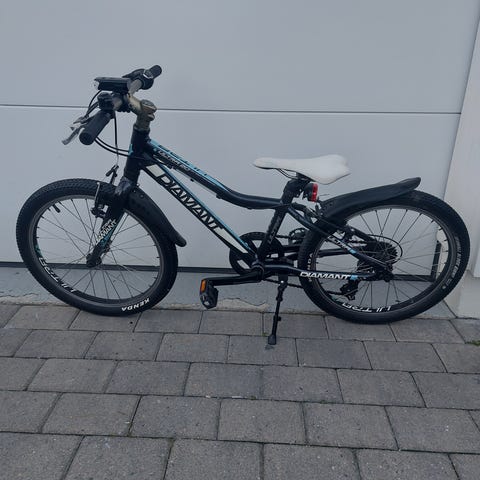 Selger en tøff White 20 lett barnesykkel. Støttebein, skjermer, ringeklokka, lys foran og bak. Sykkelen fungerer som den skal og er klar til bruk.
