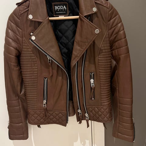 Veldig lite brukt hvit skinnjakke fra Boda Skins str 34. Kjøpt på Hevn i Oslo. Nypris ca 6000 kr. Litt liten i størrelsen. Jeg er vanligvis XS/S og denne føles litt trang. Men skinn utvider seg nok litt ved bruk og regner jeg med 🥰 Kan sendes eller hentes på Lambertseter.
