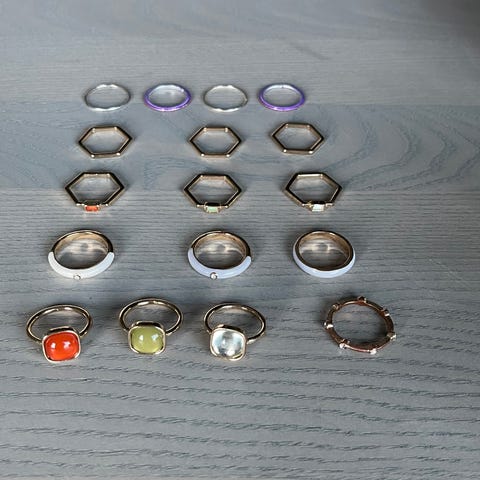 En samling på 80 ringer som varierer i størrelse. De er så vidt brukt