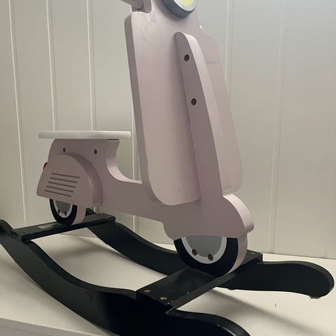 Superskjønn gyngemotorsykkel i fine pastellfarger.