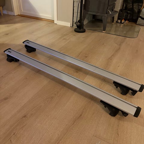 Selger en Thule takgrind som passer til biler med takrails. Den er i god stand og perfekt for deg som trenger ekstra lasteplass til ferien, jobb eller fritidsaktiviteter.