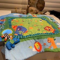 Perfekt for baby som ikke enda er oppe og krabber og går. Mykt å ligge på, lett polstring, med søtt bamse motiv som er lett å tørke av.
