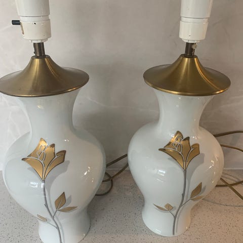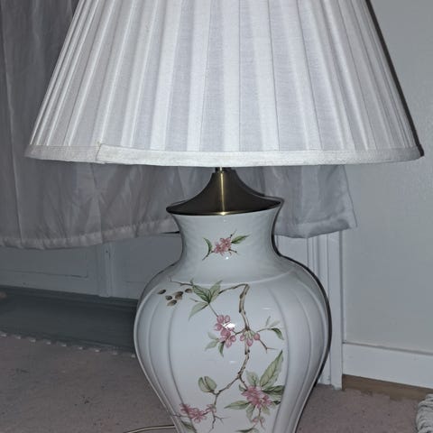 Utestet, ingen skader på porselenet. Små bruksspor på metall og ledning. Ledning er eldre, men fungerer. Anbefales ettersett av elektriker.