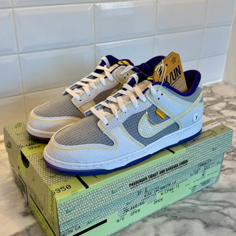 Helt nye Nike Dunk Low Union Passport Pack Argon i størrelse 44 / US10