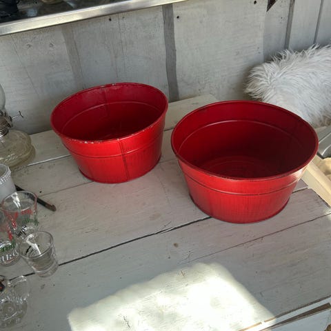Fin og hel bøtte, Noe rustflekker på kant av bøtten, og håndtaket har noen flekker. Se bilde.