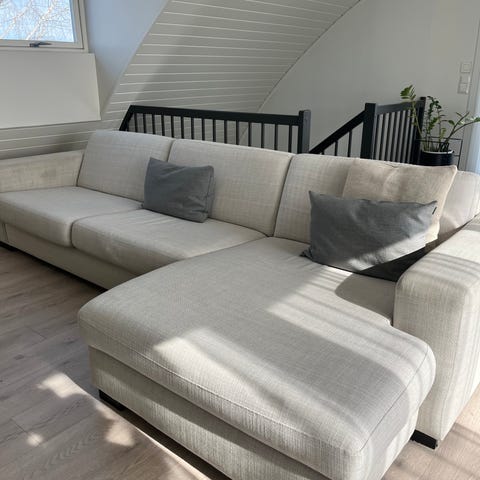 Selger en stilren og komfortabel hjørnesofa i rotting fra kvalitetsmerket Brafab. Sofaen er i veldig god stand, både når det gjelder rotting og puter – ingen skader, rifter eller misfarging. Putene er grundig renset nylig og fremstår som rene og pene.
