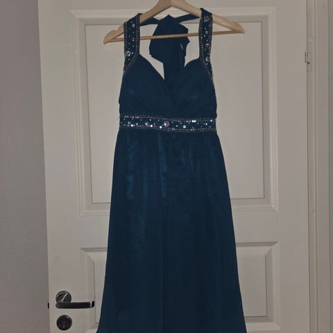 Selger en fin balkjole/ selskapskjole den er brukt en gang av ongdomen i huse her. Ho er 156 cm. Kan prøves i hegra. Snøring i rygen så kan justeres ho er xs men kan brukes av flere. Sender ikkje varen.