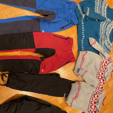 Ullsett fra Vikafjell uten anmerkning. Ullongs fra Devold er er slitt på begge knær. Ullsett fra Jotunheim har noen nupper. Jakke følger med. Godt brukt.