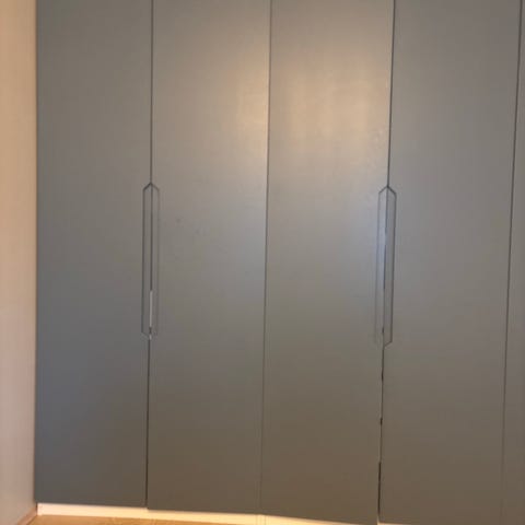 Pax skapdører 75x58x236 .3 meter bredt( 4 stk 75cm stamme .skal over til bredere skap med dører.2skapdører har ripe på seg.2.500,- for dører.