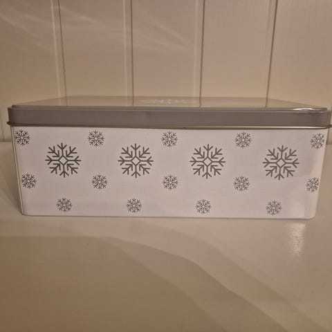 Kakeboks selges. Mål på bilde. Fremstår ubrukt