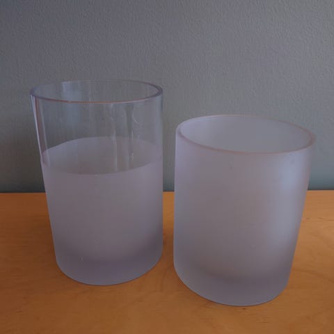 To vaser fra Mester Grønn brukt enn gang. 70 NOK per stk eller 150 NOK for begge to. c. 13 cm x 17 cm bredde.