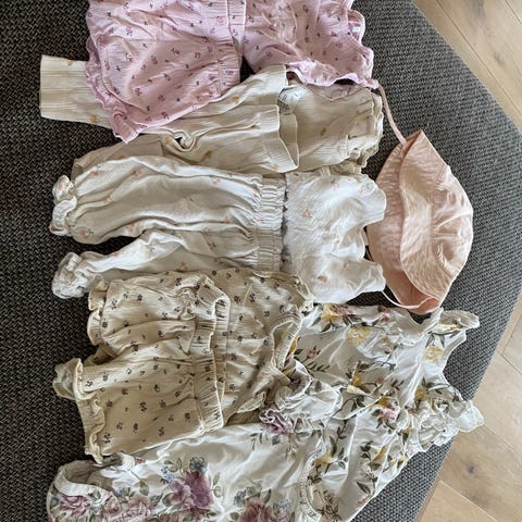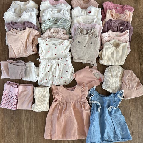 Klespakke i størrelse 56 (1-2mnd). Tøyet er pent brukt, det meste er kun brukt av ett barn.