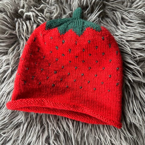 Morsom lue til utkledning, jordbær. Str. 86/92