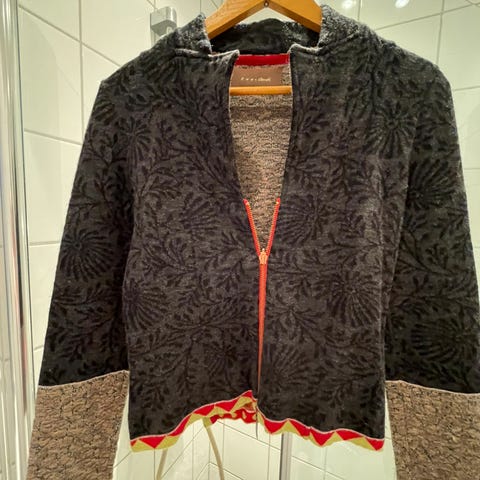 Eva Claudi strikket kardigan, Danish design, ull mix: 60% ull, lengde 62cm, bryst fra ermehull til ermehull 55cm, str.L( passer str.S/M)