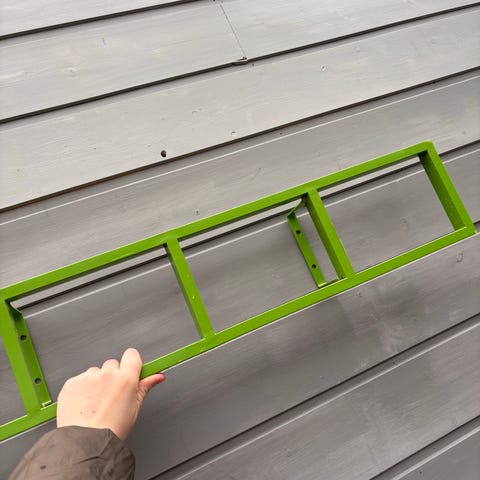 Nydelig antikk hylle i original farge . ca 20 cm dybde , høyde 34 cm, bredde 98 cm.