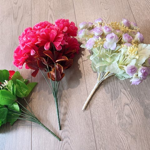 Dekorativ blomsterbukett laget av kunstige blomster i en elegant sølvfarge. Perfekt for å gi et stilfullt preg til hjemmet eller kontoret. Buketten er plassert i en dekorativ vase og er enkel å vedlikeholde.