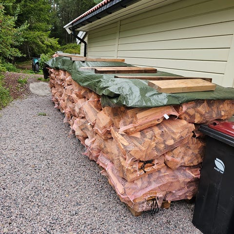 Selger eik og bjørkeved. Lagret 2 sesonger.