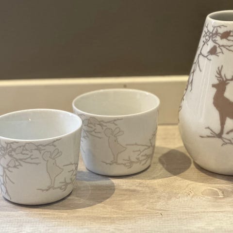 Laget av feltspatporselen og kan vaskes i oppvaskmaskin.