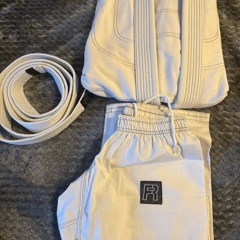 Nesten ny rosa Juijutsu drakt i str. ca 134/140 selges. Brukt maks 4-5 ganger og fremstår som ny. Hvit belte følger med, alt originalt fra FUJI.