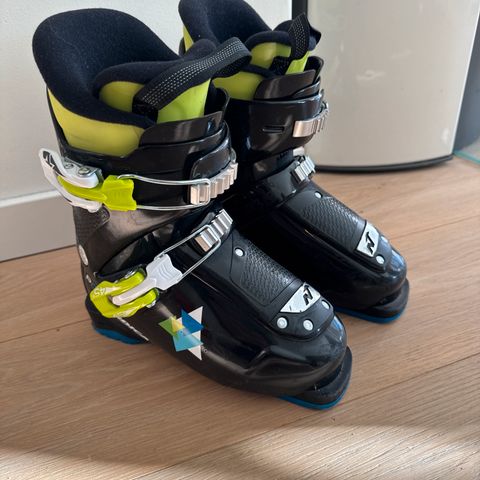 Selger slalåmski, slalomstaver og støvler billig da min datter har vokst fra dem desverre. Se bilder for spesifikasjoner og mål på ski +bindinger