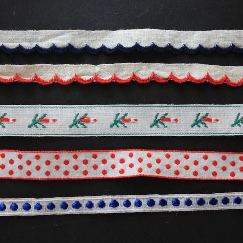 Flotte vintage retro broderte/vevde pyntebånd fra Japan - fine til festdrakt/fantasibunad til barn