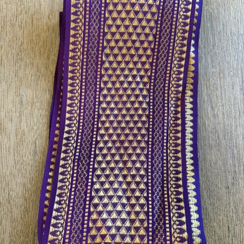 Alle båndene er i kjempefin stand. Jeg kjøpte disse nye i butikk på en reise til Japan for over 20 år siden, men har aldri brukt de, så nå er det på tide å selge og la noen andre få glede av de. Jeg er ganske sikker på at disse er 100% bomull, men kan ikke garantere helt sikkert. Kjempefine bånd til å pynte en festdrakt eller fantasibunad med til barn feks.