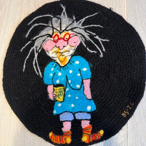 Hjemmeheklet sitteunderlag selges. Tovet. Ubrukt.