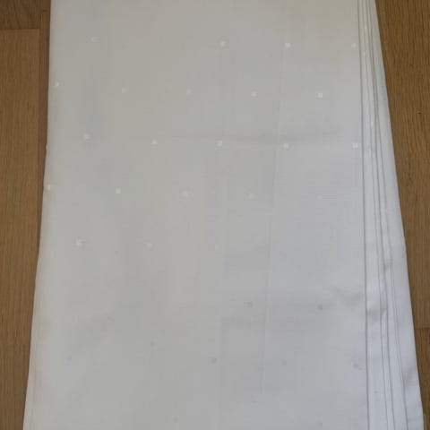 Den ene duken er åpnet og kun prøvd, men ikke brukt. Nypris pr duk er 99 kr.