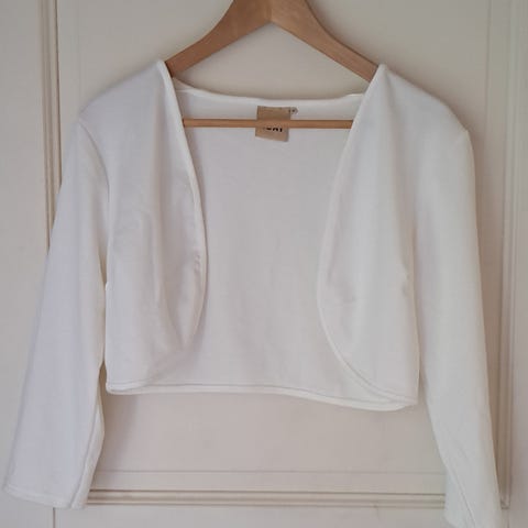 Sølv / glitter bolero fra b.young. Str L. Strikket / knit. Korte ermer. Snøring foran.