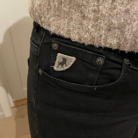 En stilig bukse i sort farge og i myk kvalitet. Buksen har en komfortabel utforming med medium høyde på livet, beltehemper i linning og god stretch. Denne buksemodellen sitter smalt rundt hofte og lår og har sleng nederst i bena.