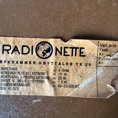 Radionette Cinema 73B høytalere selgest for hbo 800kr