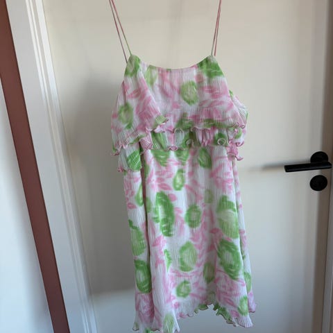 Ubrukt Ganni Crinkled Satin Slip kjole. Grønn. Strl 38.