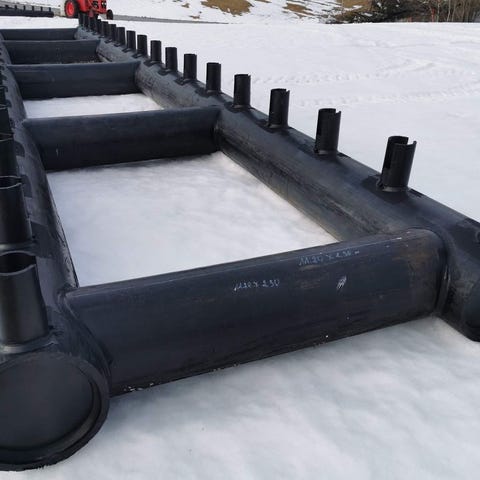Plattformer i trykkimpregnert materiale til terrasse, flytebrygge etc