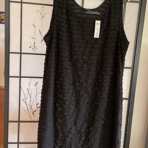 Helt ny kjole i svart med blondekant i utringning. Lappen fortsatt på!