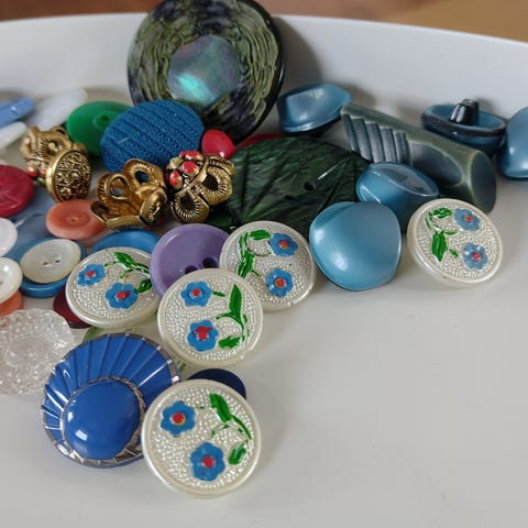 Selger denne samlingen med bånd og perler. Antar at det er fra 70-tallet. Selges samlet