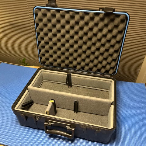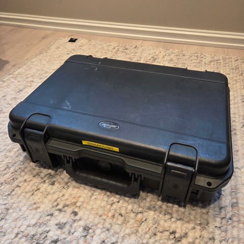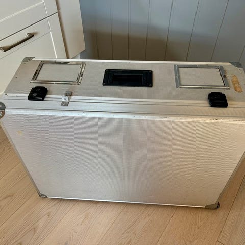 Solid plastkoffert. Målene innvendig er: ca. 16 X 38 X 26cm. Den kan låses med hengelås. Den har trykkventil. Er kun brukt en gang for frakt av et måleinstrument, derfor er det utskjæring i det ene skumlaget. Kan sende, frakt tilkommer kjøper.