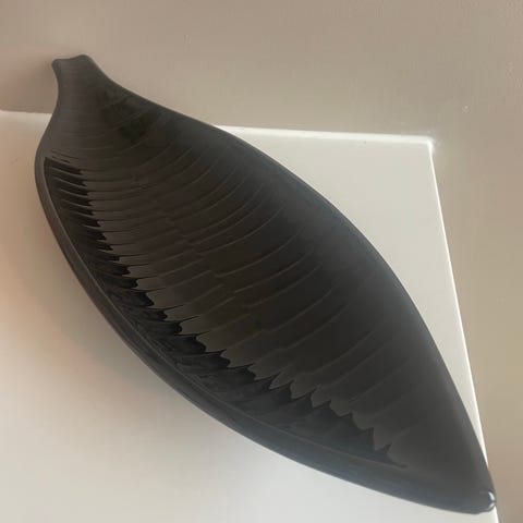 Mørkeblått fat fra Rörstrand med fisker på kanten.
