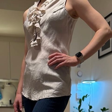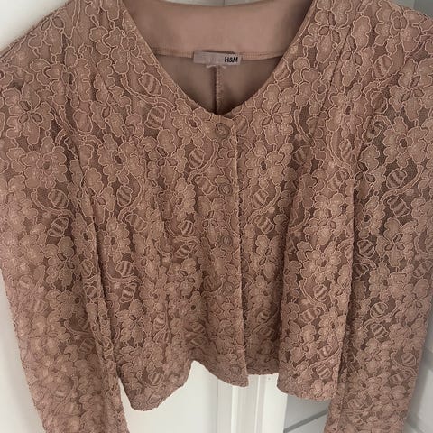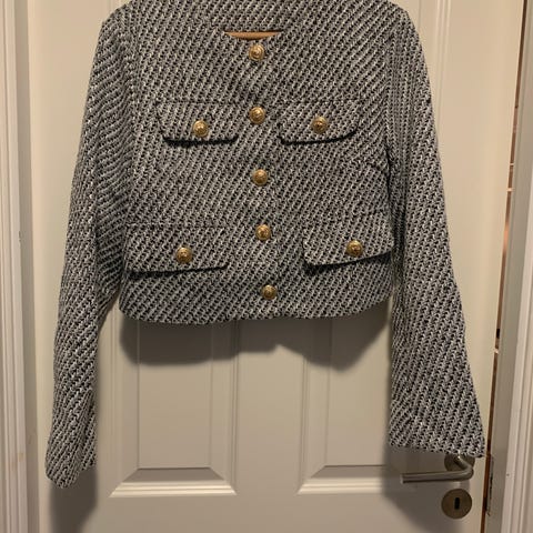 Nydelig kort jakke som kan brukes som vist på bildene, eller så kan man ta av nedre del ved glidelåsen og bruke den som en bolero. Sitter flott på😊Størrelse 38.