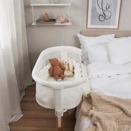 Reisesegn, baby bedside crib fra Moweo med madrass og barnesengetøy
