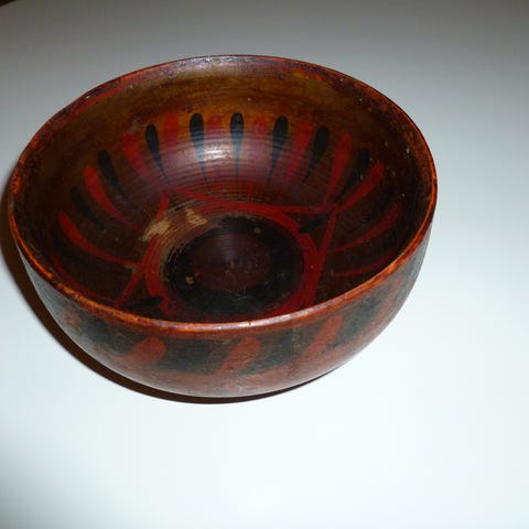 Dreid malt antikk bolle. Ser svært gammel ut . Muligens fra slutten av 1800-/begynnelsen av 1900-tallet?