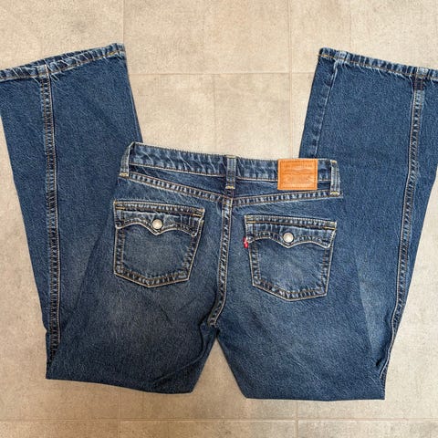 Mørk milleniums miss sixty jeans. Litt slitt nederst ellers pent brukt i str 27. Må hentes i Kristiansand eller sendes om kjøper betaler frakt.