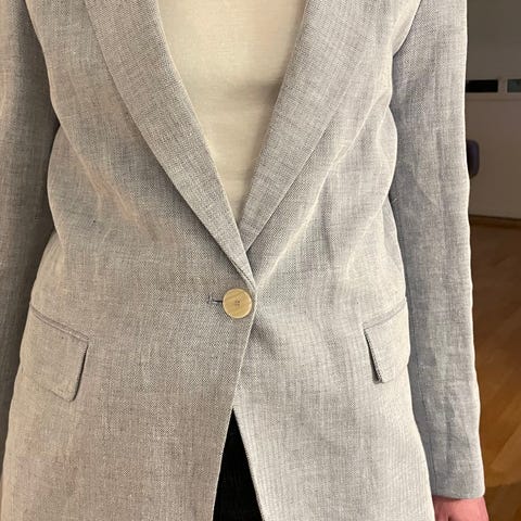 Lysebrun fløyel blazer/jakke, størrelse S. Merke Mango. Denne er lite brukt, så ser ny ut. Lekker farge på denne jakken. Selges fordi jeg har for mye klær, og den blir ikke brukt.