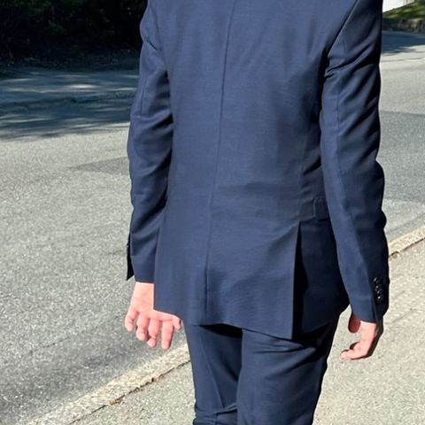 Svart dress i str 44, smal modell. Perfekt til konfirmant/ungdom. Skjorte (str xs) i lys blå medfølger.