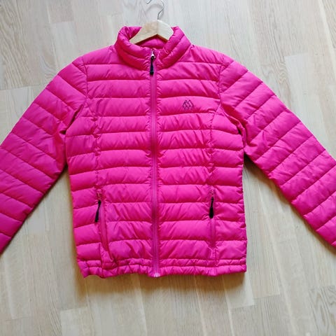 Deilig dunjakke, god og varm selges da jeg har for mange. Jakken har 2 gode innerlommer, stramming nede og på hetta, deilig høy krage. Dette er en fantastisk deilig varm jakke, lett men tykk