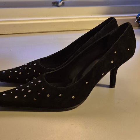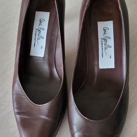 Lekre og behagelige kinnsko til dame fra spanske Ana Bonilla. Lav hæl, som pumps, men smal hæl. str. 39. Ekte skinn, made in Spain. Svært behagelige sko på foten, men jeg bruker aldri høyhælte sko, selges derfor. Pent brukt, som ny, utenom at man kan se under sålen at de er brukt.