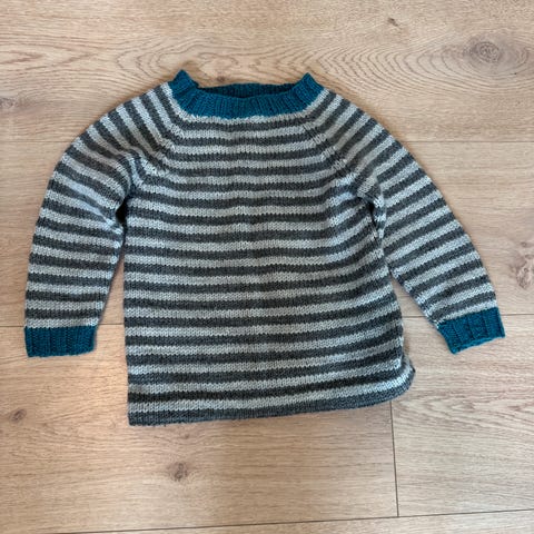 Ubrukt flettegenser selges fordi vi har for mye strikk. Første bilde for illustrasjon. Ca str 2 år.
