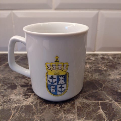 Flott Porsgrund porselenskrus med Rica reklame